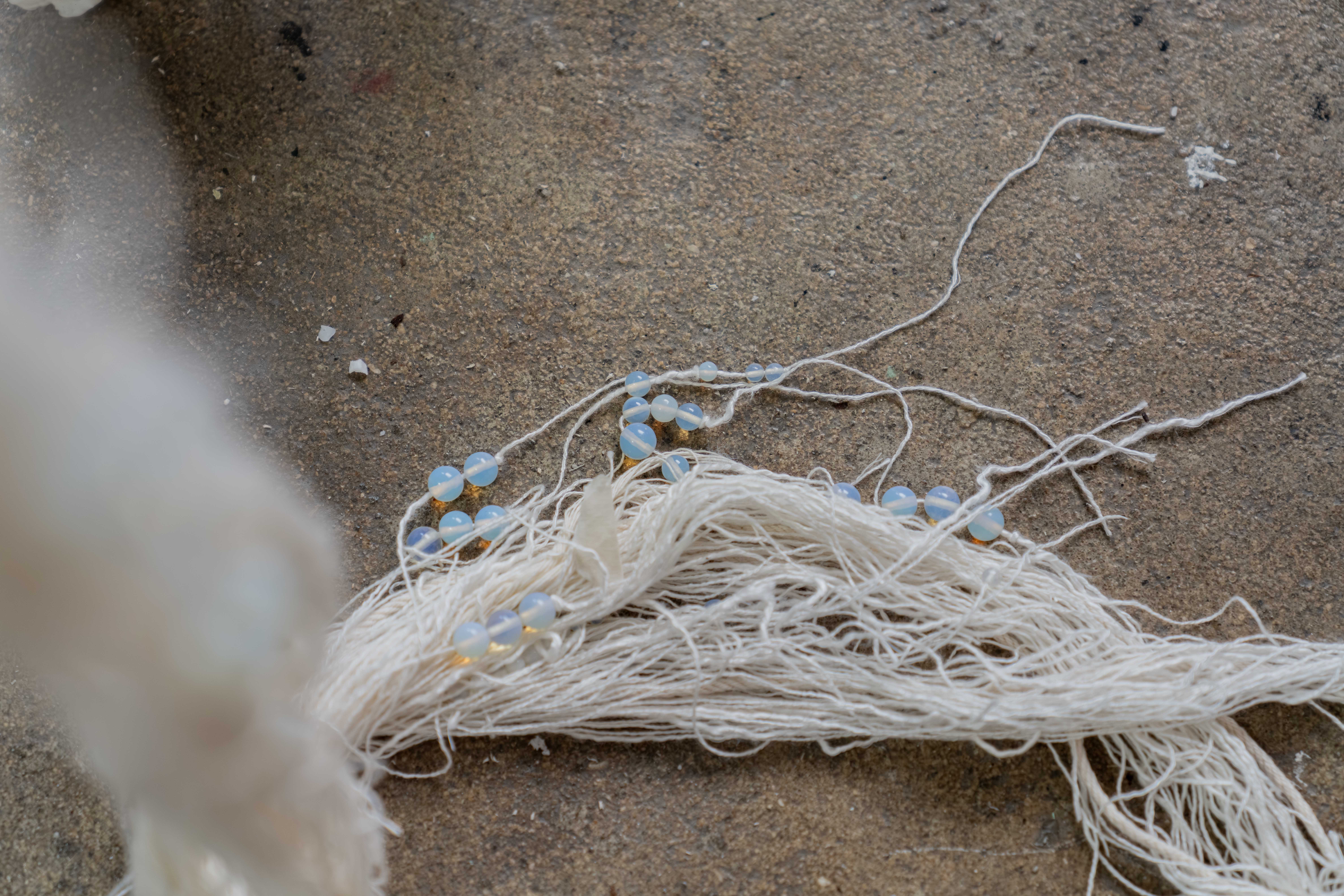 Dog skulls dyed by Impatiens flowers, steel, beeswax