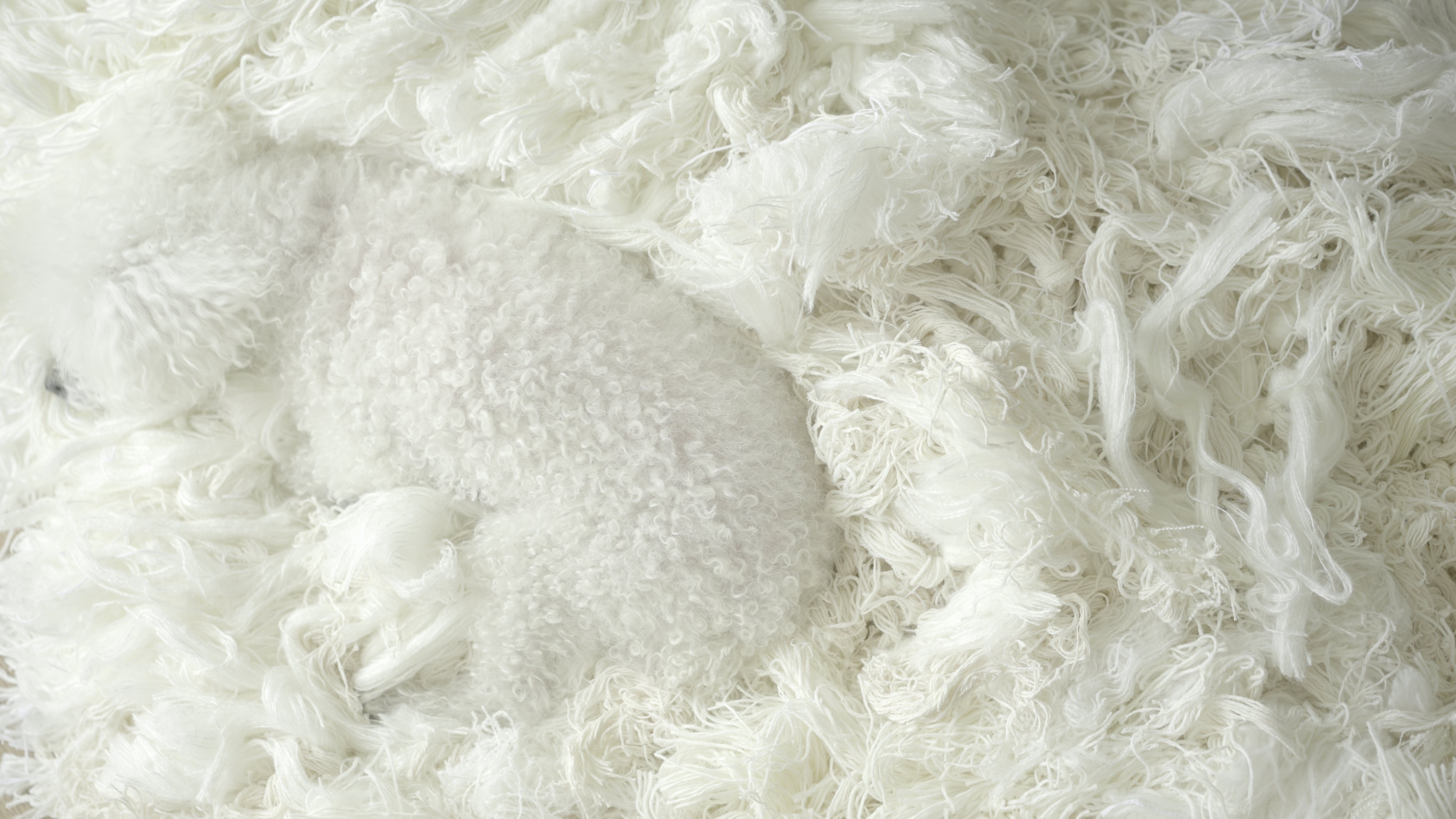 While laying on top of the fur creation from Breaking Off Time from the Eternal, I say the word “one” for each of Popo’s heartbeats, while another performer says “two” for each of mine. This work begins with the sound of the heartbeat of a small elderly dog reverberating like the ticking of the large clock in an empty living room. For this work, I continually summon the words “end” and “separation.” At the moment that I perceive this thought as an arrogant belief that flows from me to my dog only, I invite a third party to record my own heartbeat. Indeed, the presence of identity.
